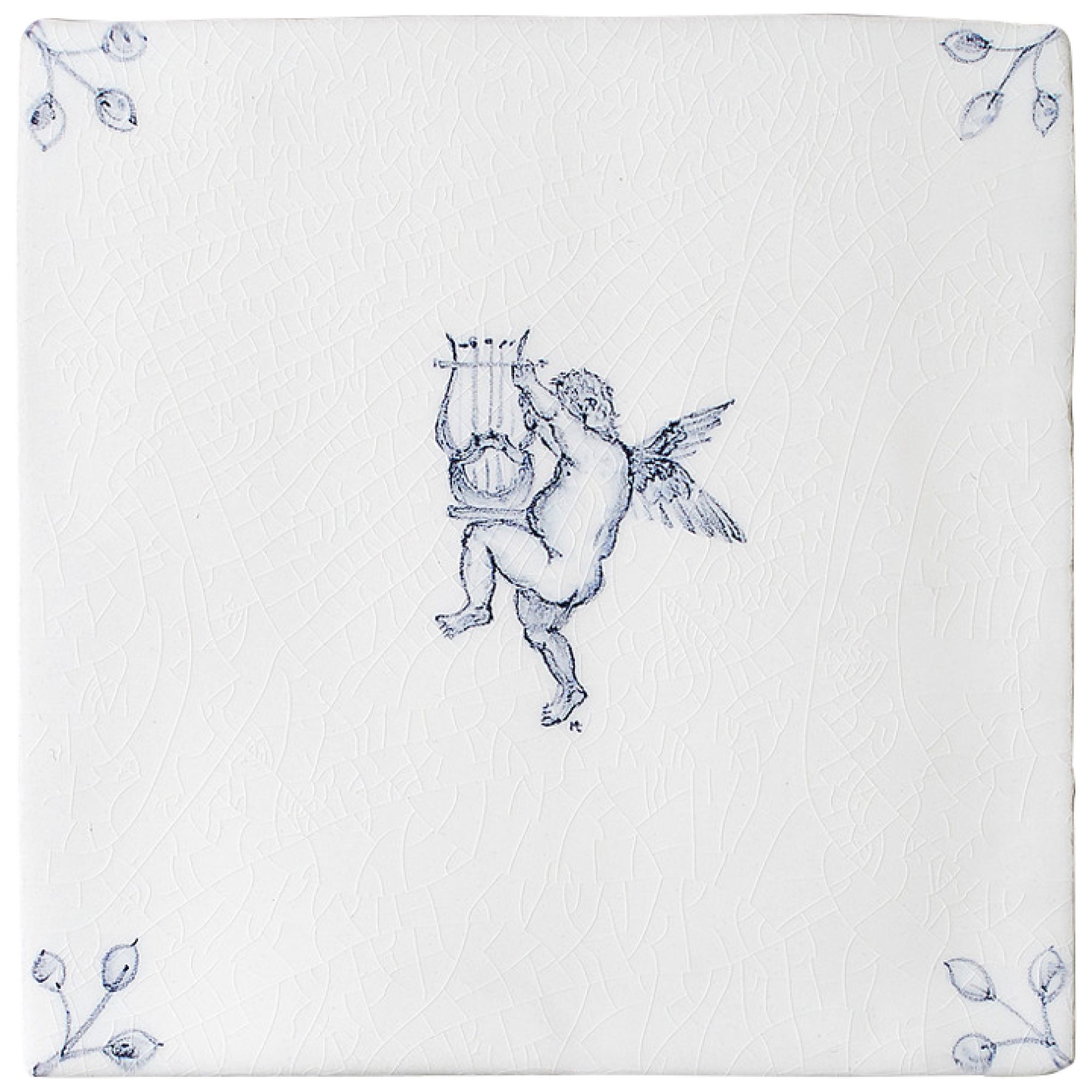 Kerub på klassiskt Delft-blått på en platta i format 13 x 13 cm. Varje exklusiv platta handmålas på beställning, stämplas och signeras av konstnären. Beställningsvara.